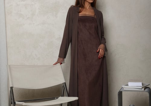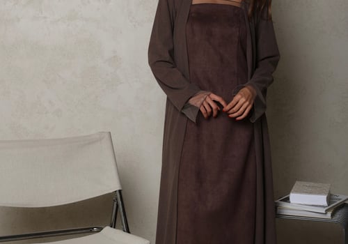 Model is wearing an XS/S Bisht is 56 inches Dress is 54 inches