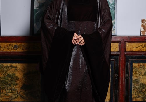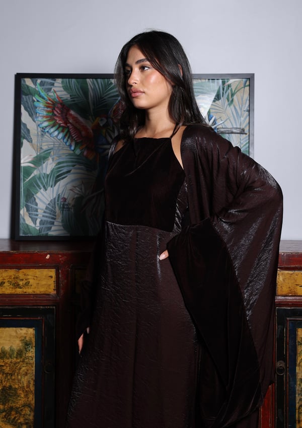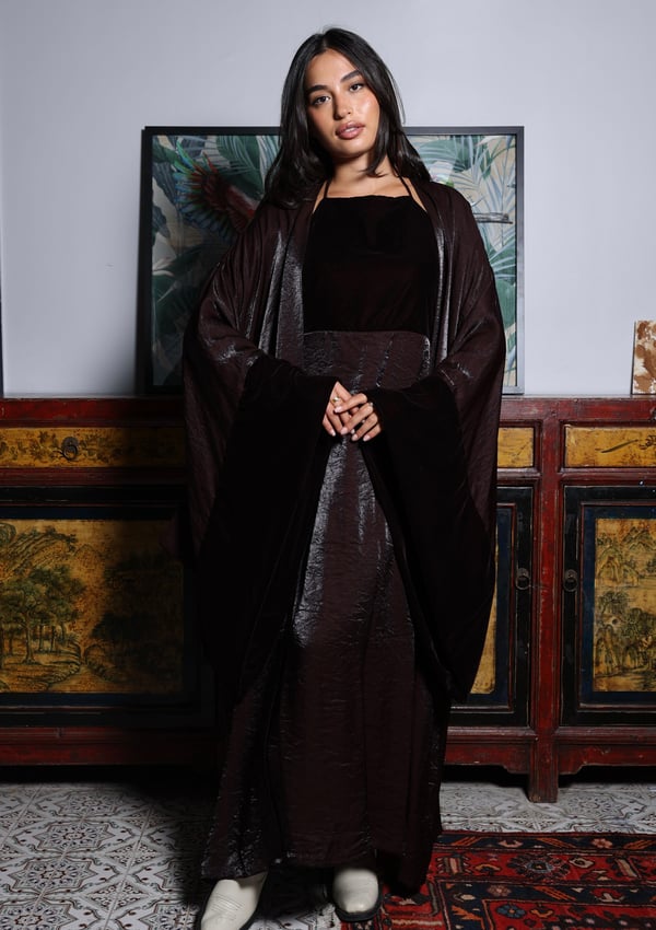 Model is wearing an XS/S Bisht is 56 in...